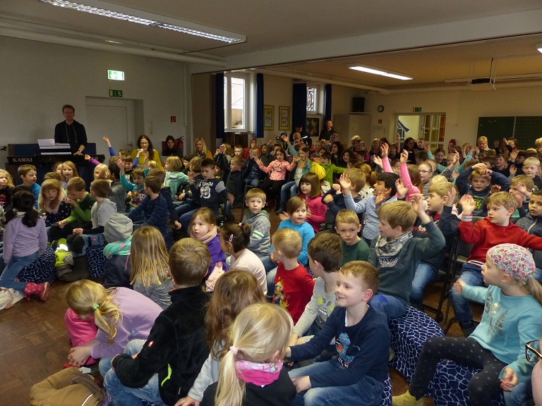 Zum Abschluss spielten die Kinder der Musik-AG das Lied „I like the flowers“, zu dem alle Kinder kräftig mitsingen konnten.