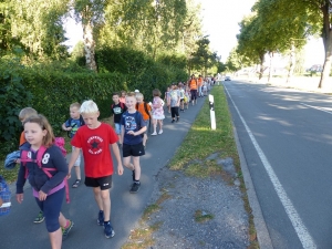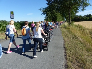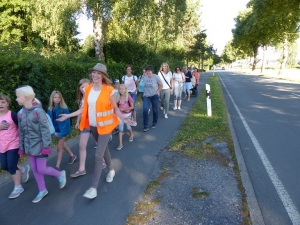 Auch die Kinder der DWS machten sich bei strahlendem Sonnenschein zu Fuß auf den Weg nach Buddenbaum. Begleitet von Lehrkräften und Eltern wanderten sie die rund vier Kilometer, bis sie nach einer Dreiviertelstunde am Ziel waren.