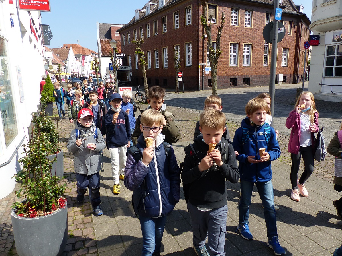 Am Mittwoch sind wir um 8.30 Uhr zusammen mit der Klasse vier an der Schule losgefahren nach Warendorf.