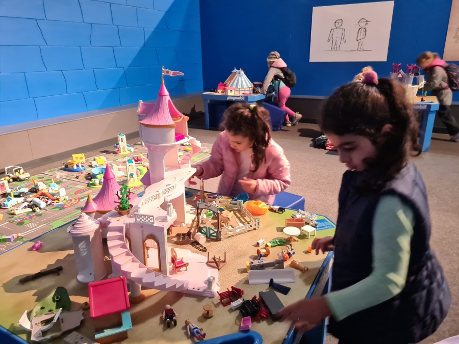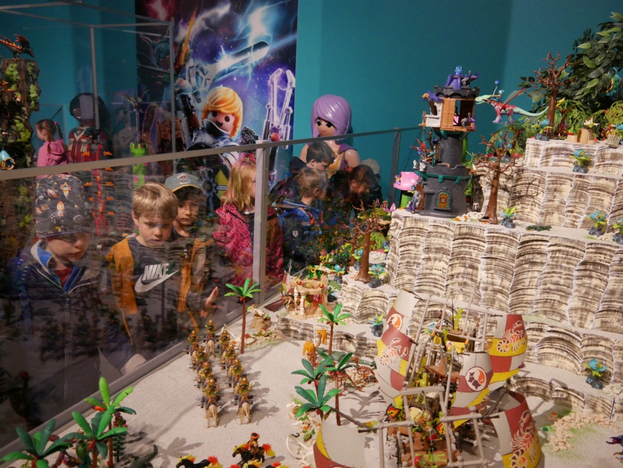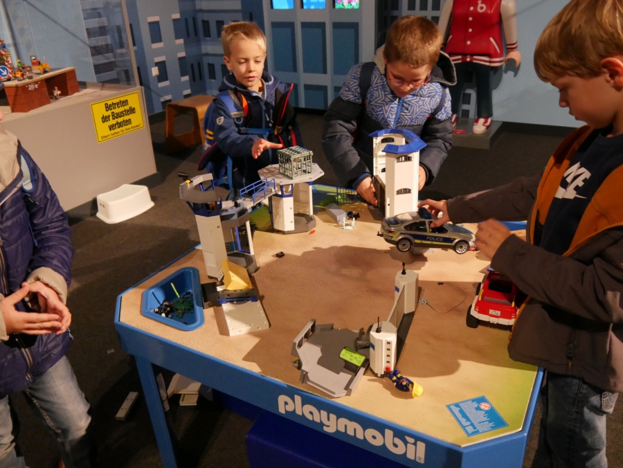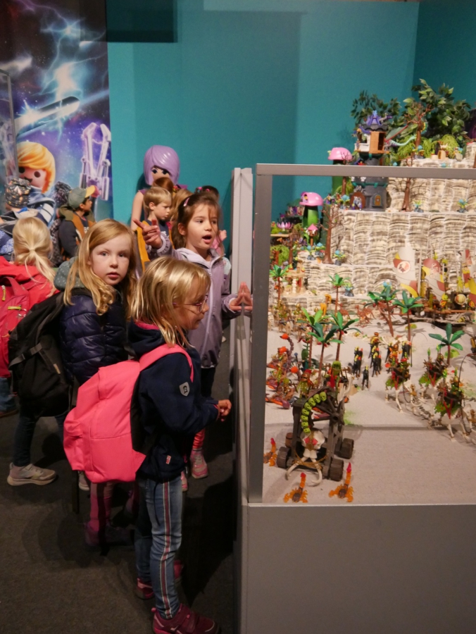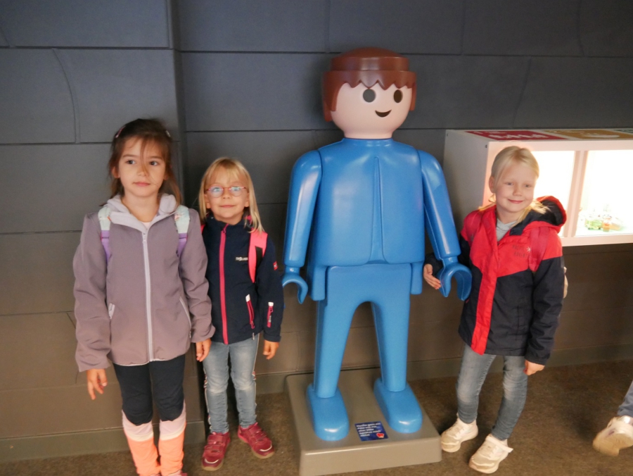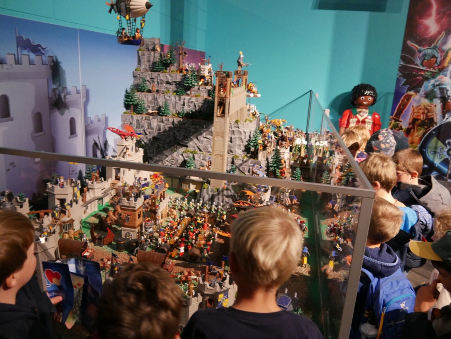 Dort waren sie bei strahlendem Sonnenschein tatsächlich fast die einzigen Gäste und konnten sich nach Herzenslust verteilen und austoben. Die ersten Gruppen gingen direkt in die große Playmobil-Ausstellung und staunten über die riesigen Spielwelten, die dort aufgebaut waren.