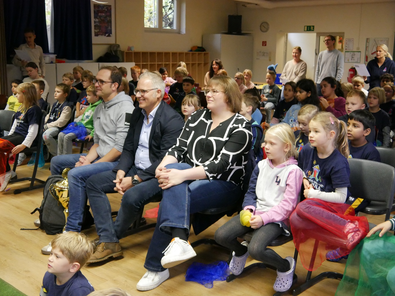 Schulleiterin Ilka Pelke begrüßte alle sehr herzlich und freute sich, dass die historische Leistung der Klasse 4 in diesem besonderen Rahmen noch einmal gewürdigt wurde. Auch die Schulpflegschaftsvorsitzende Kerstin Holtrup beglückwünschte die Kinder und betonte den Zusammenhalt und Teamgeist, der diesen Erfolg erst ermöglicht hatte.