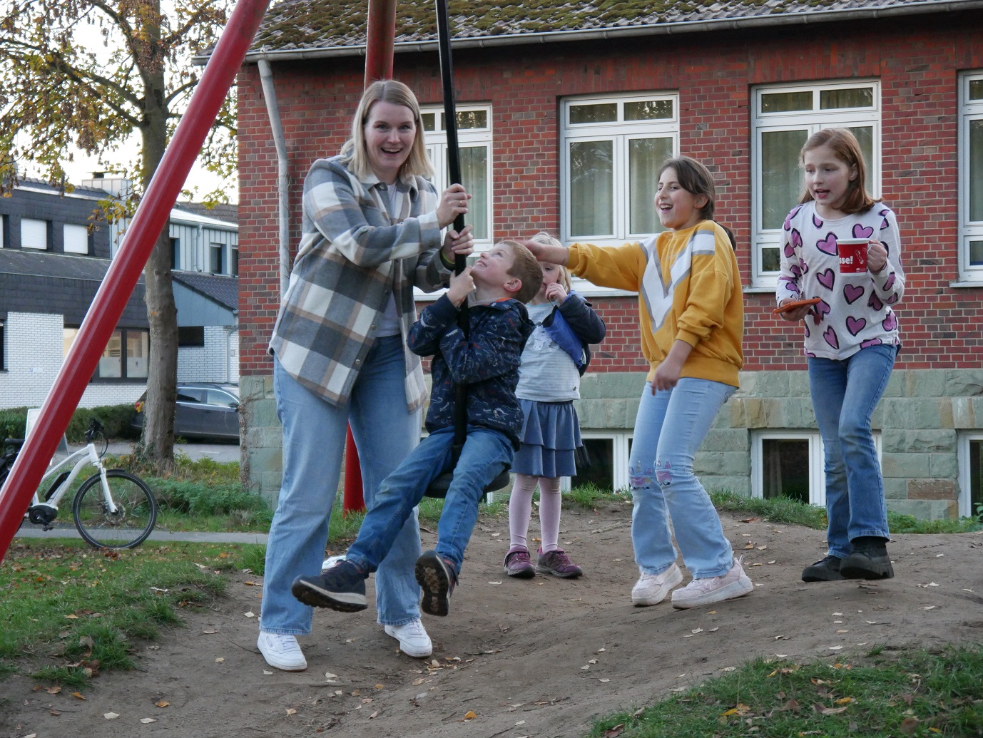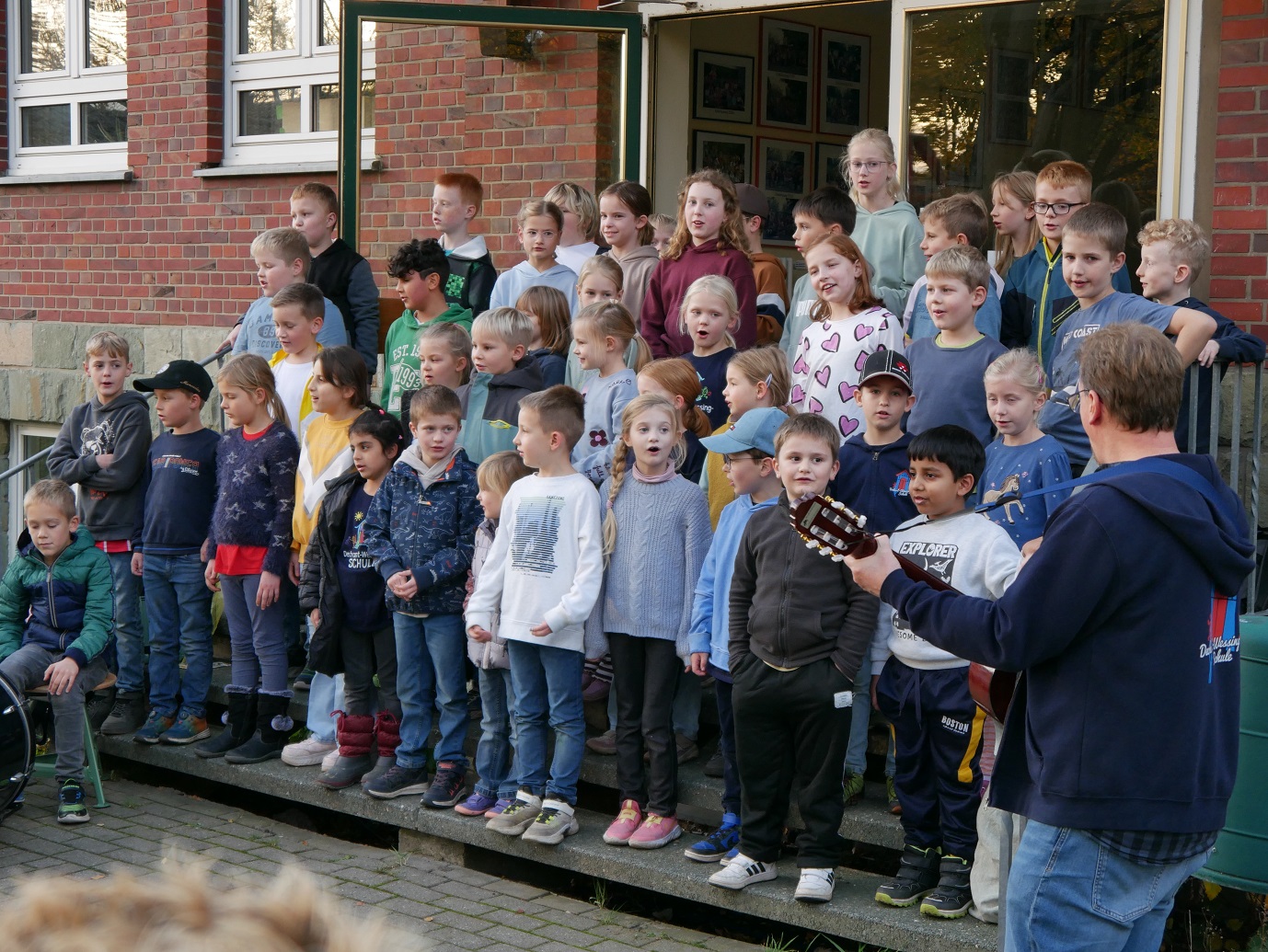 Die Kinder konnten nach Herzenslust kicken, klettern, schaukeln, buddeln und spielen, während die Eltern sich unterhielten und austauschten. Gegen 16 Uhr waren auch die letzten AGs beendet, so dass alle Schülerinnen und Schüler gemeinsam das neue Lernhauslied präsentieren konnten, das Herr Mühlmann zur Melodie von „Yellow submarine“ getextet hatte.