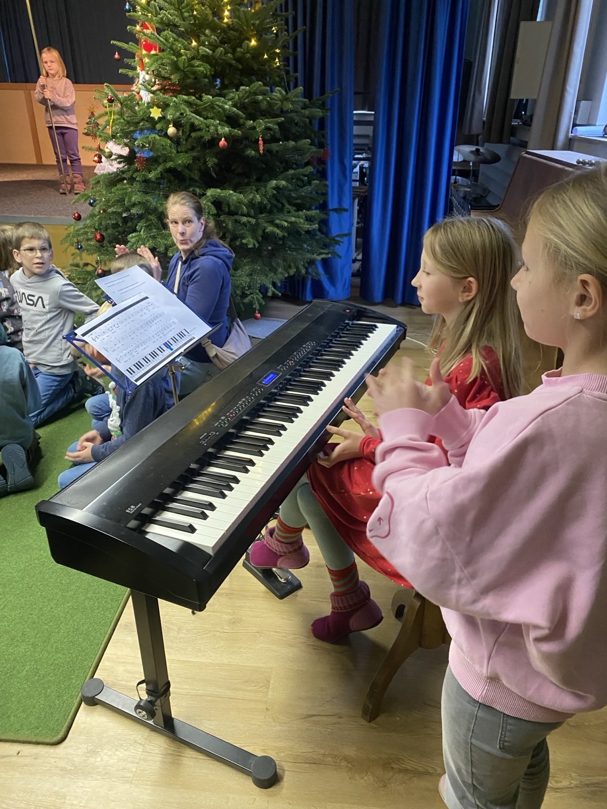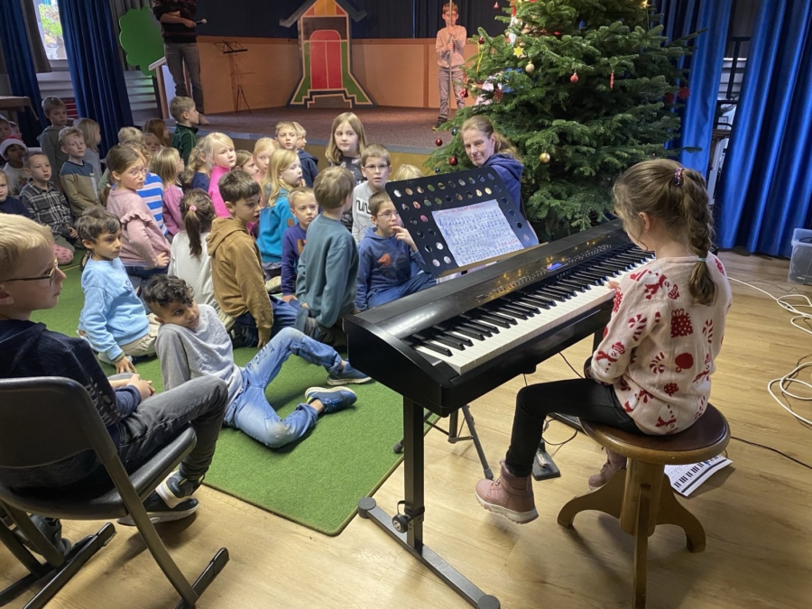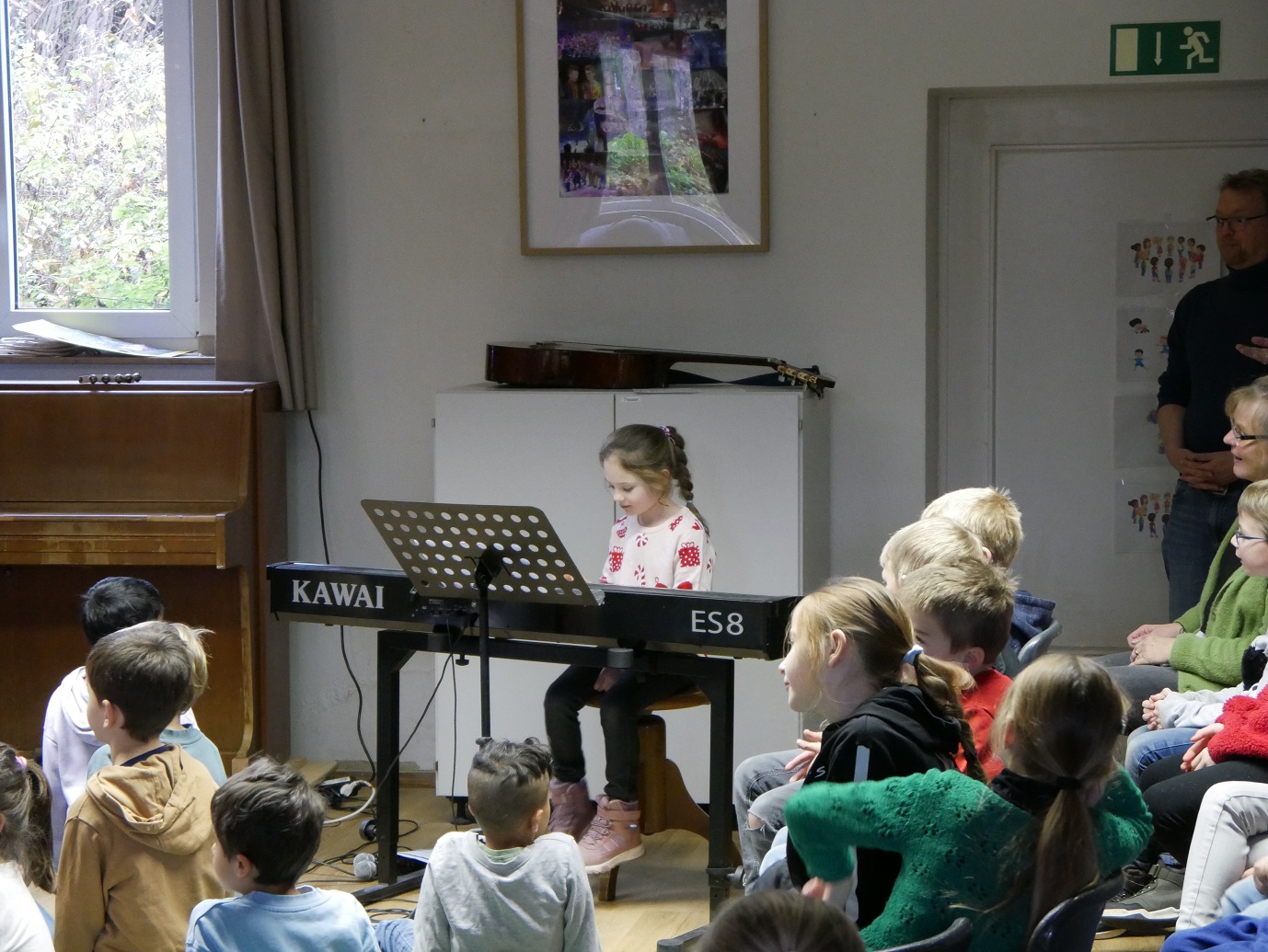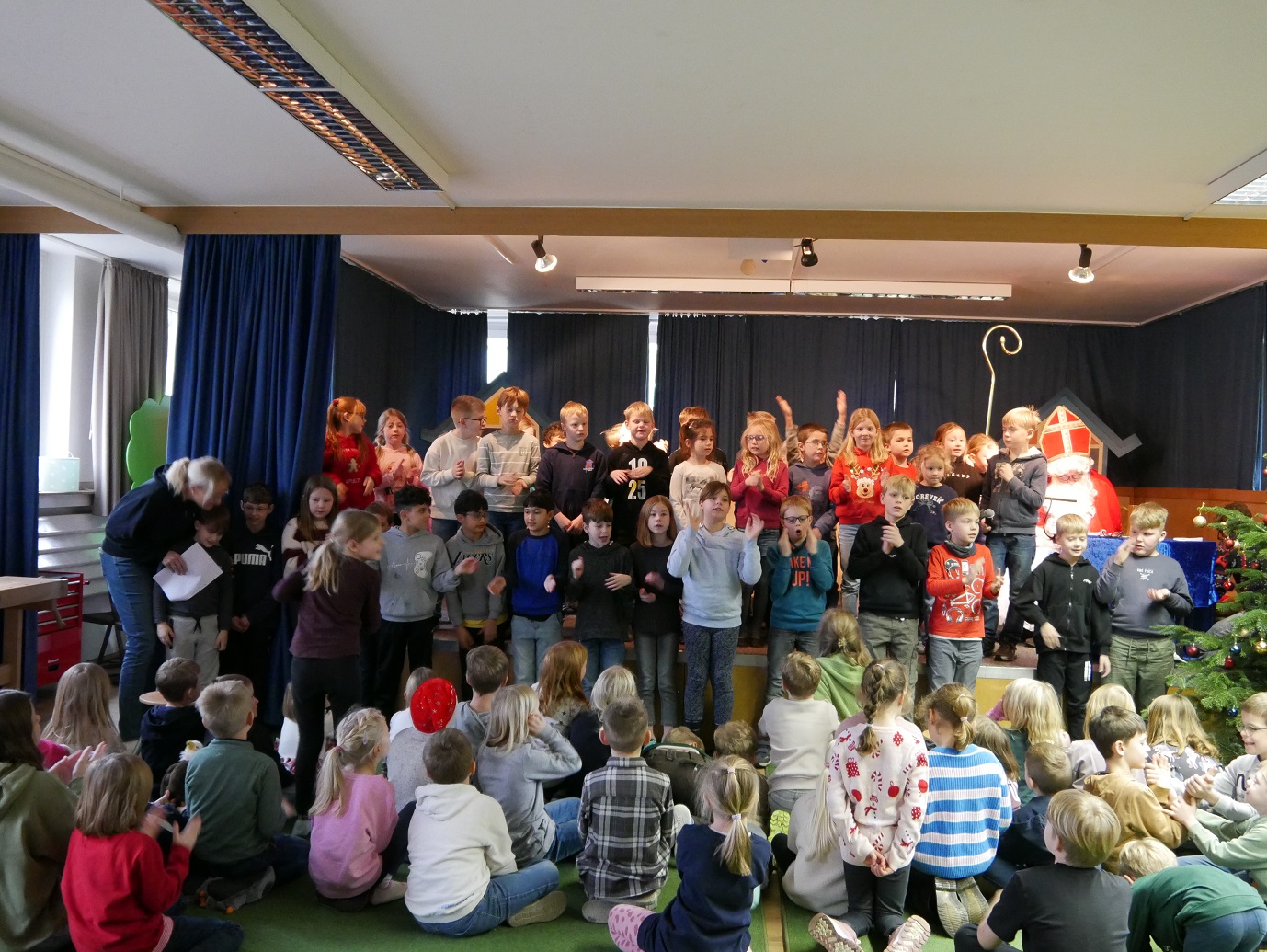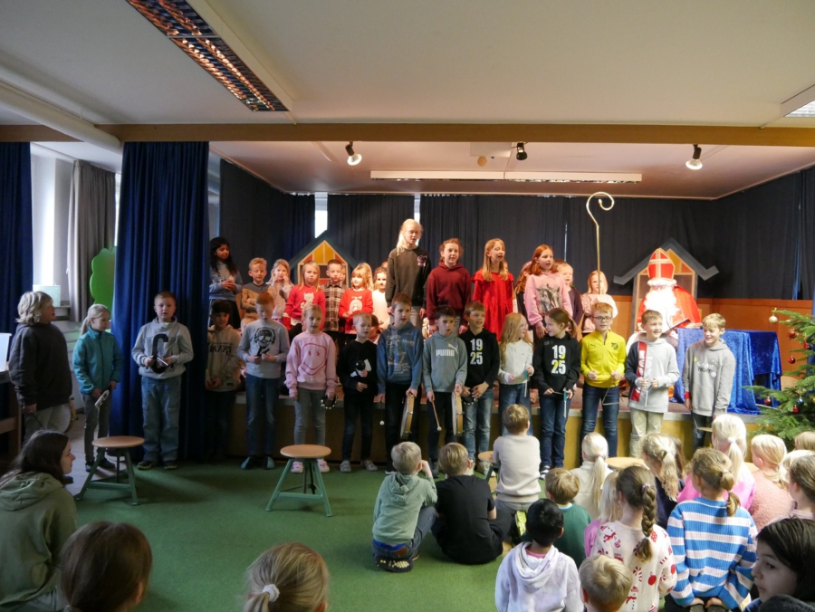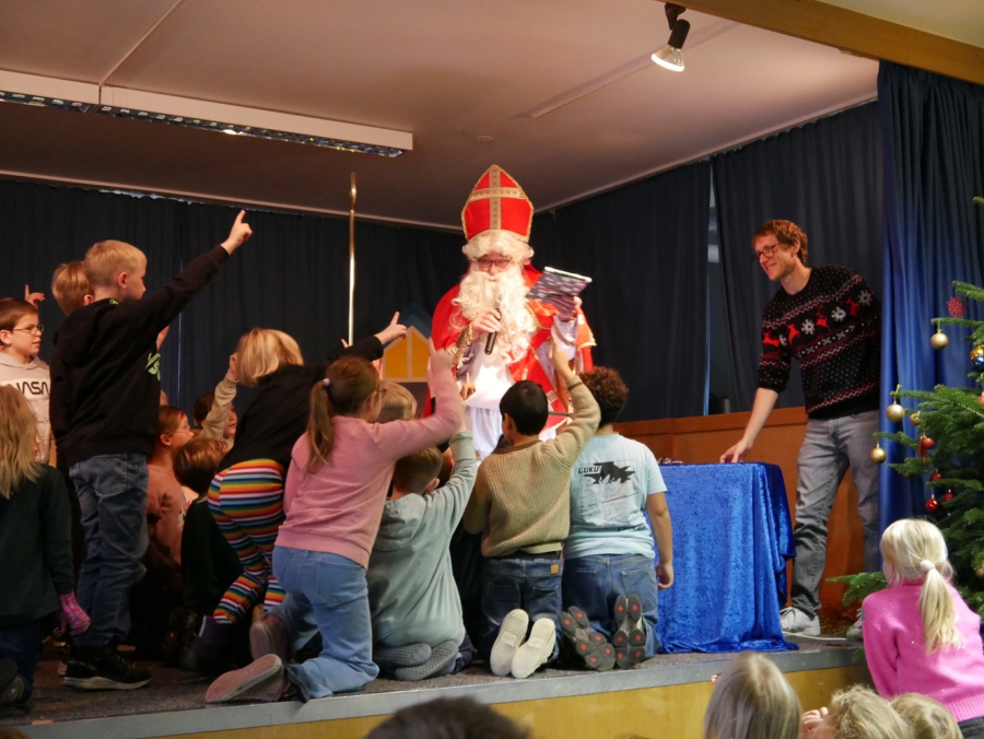 Konrektor Matthias Riediger begrüßte ihn herzlich und übergab sofort an Malea, die mutig ganz allein „Lasst uns froh und munter sein“ auf dem Klavier vorspielte. Lina trug das „Nikolaus-ABC“ vor und bekam anschließend sogar selbst noch ein Ständchen, gemeinsam mit Max, weil beide am heutigen Tag Geburtstag hatten!