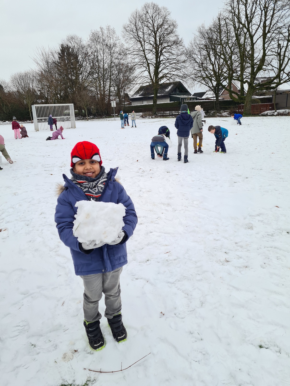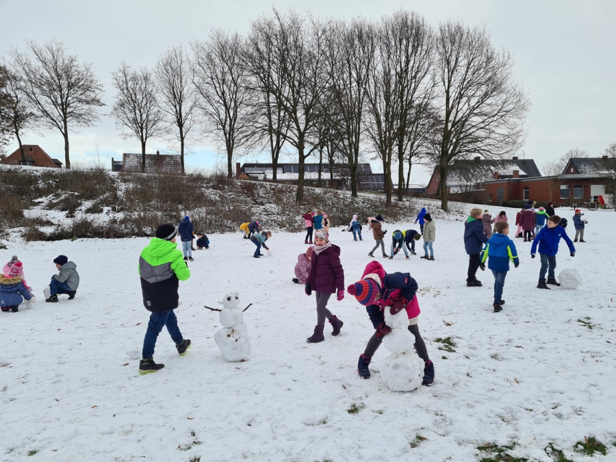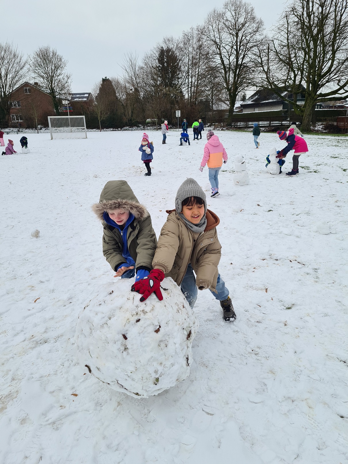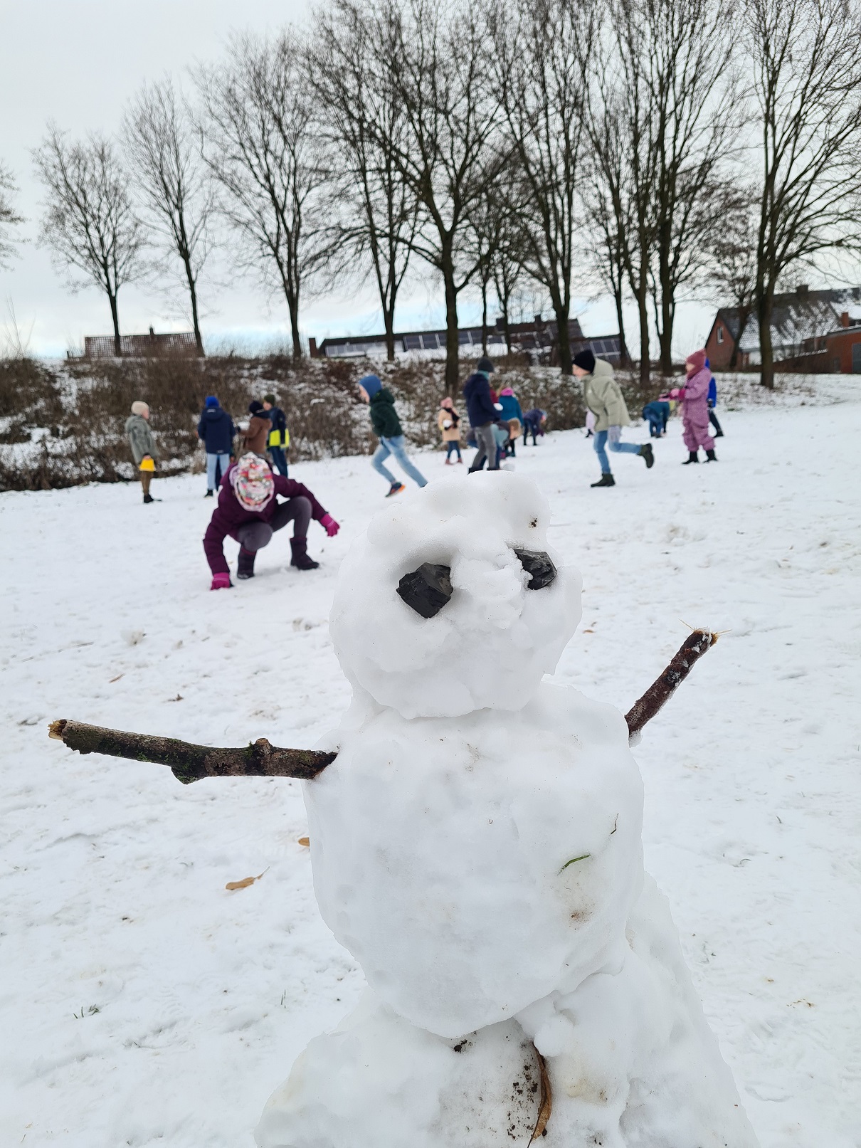 Heute gab es in den Pausen die seltene Gelegenheit, nach Herzenslust Schneemänner zu bauen – das ging natürlich besonders gut auf dem Bolzplatz!