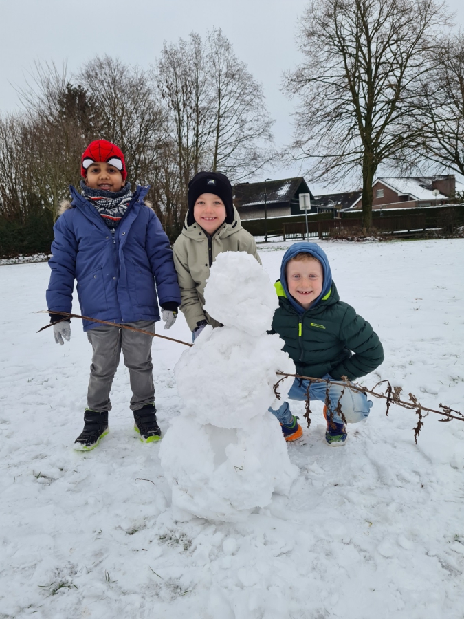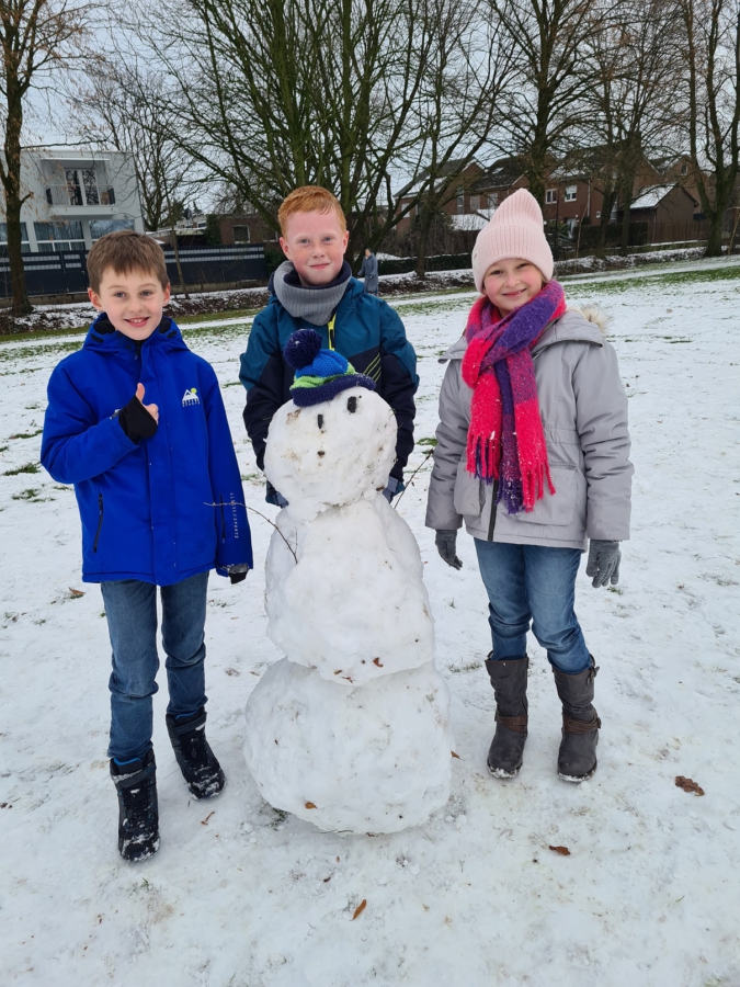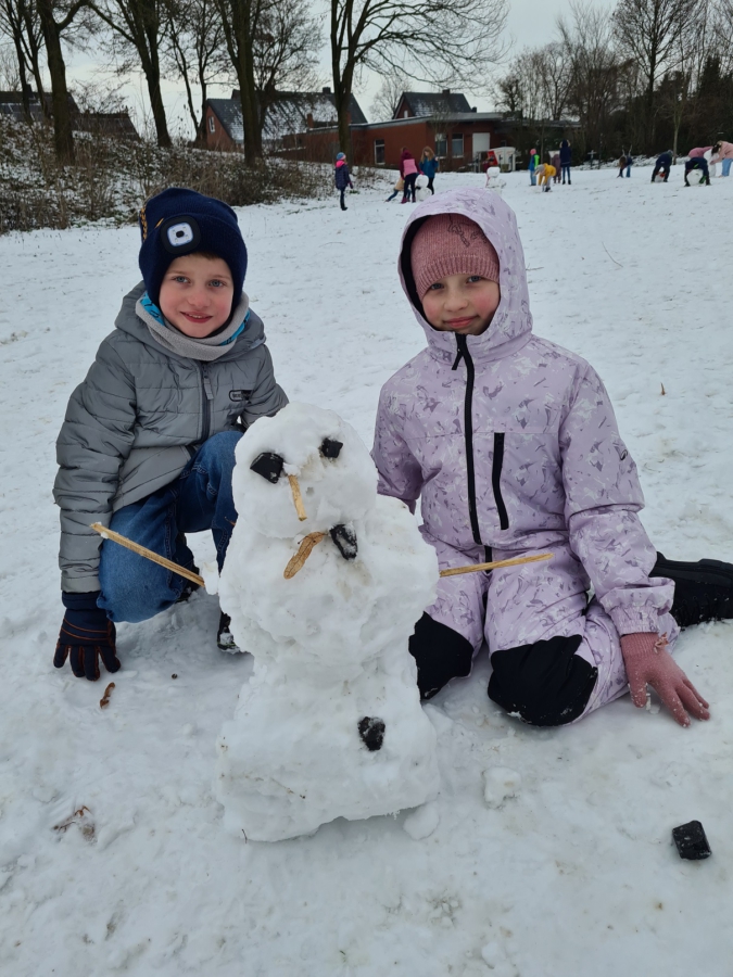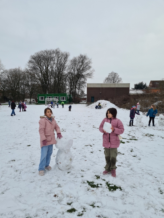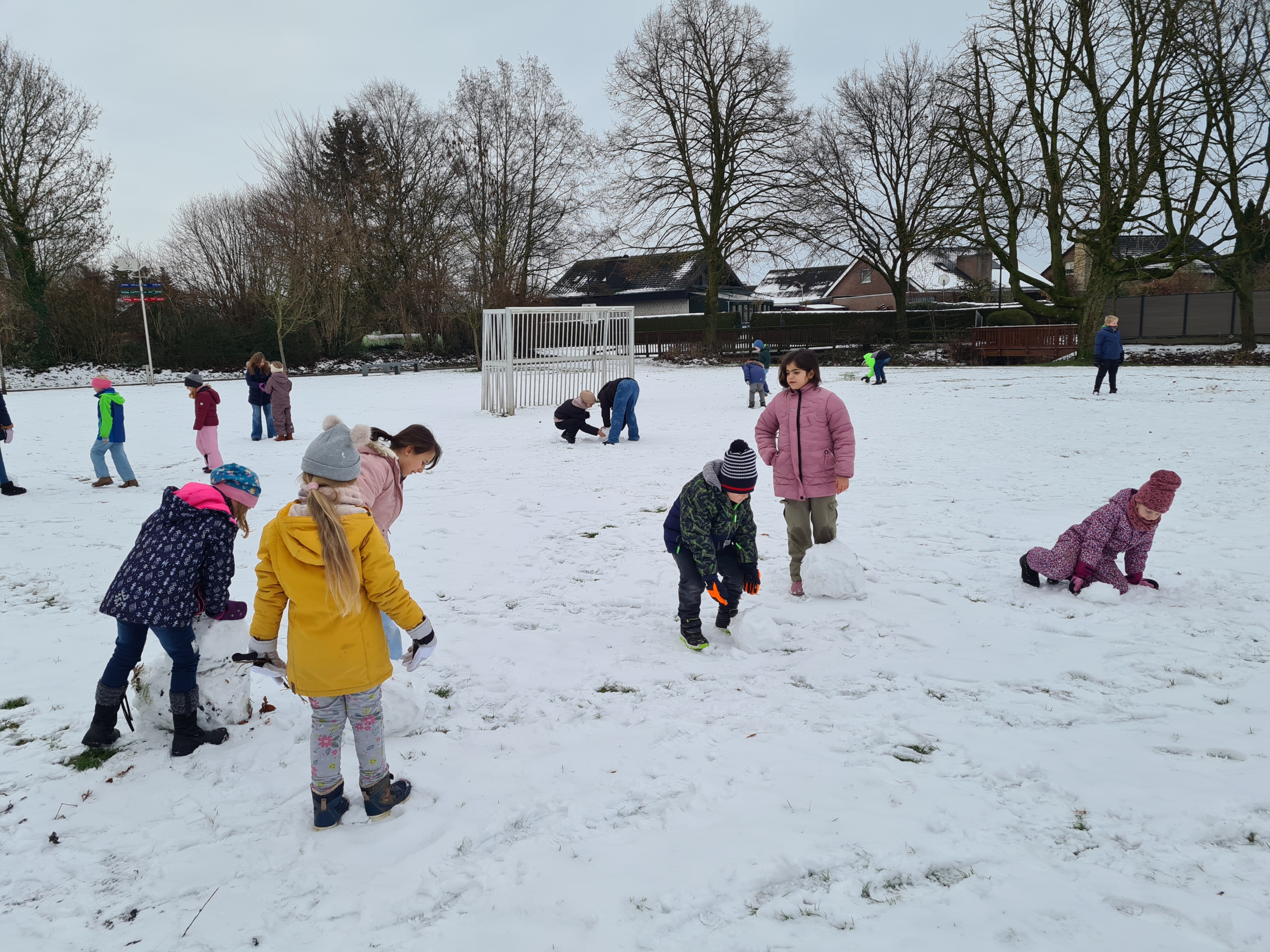 Heute gab es in den Pausen die seltene Gelegenheit, nach Herzenslust Schneemänner zu bauen – das ging natürlich besonders gut auf dem Bolzplatz!