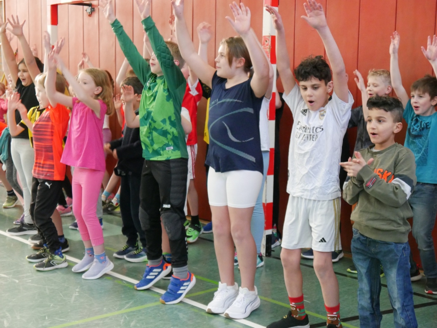 Mit dem motivierenden Lied „Gute Laune“ begann der Nachmittag schwungvoll. Schon zu Beginn waren viele lachende Gesichter zu sehen, und die gute Stimmung begleitete alle durch den Nachmittag. Die Kinder beider Klassen verstanden sich hervorragend, lernten sich besser kennen und unterstützten sich gegenseitig an den verschiedenen Stationen. Teamgeist, Rücksichtnahme und Freude an der Bewegung standen dabei im Mittelpunkt.