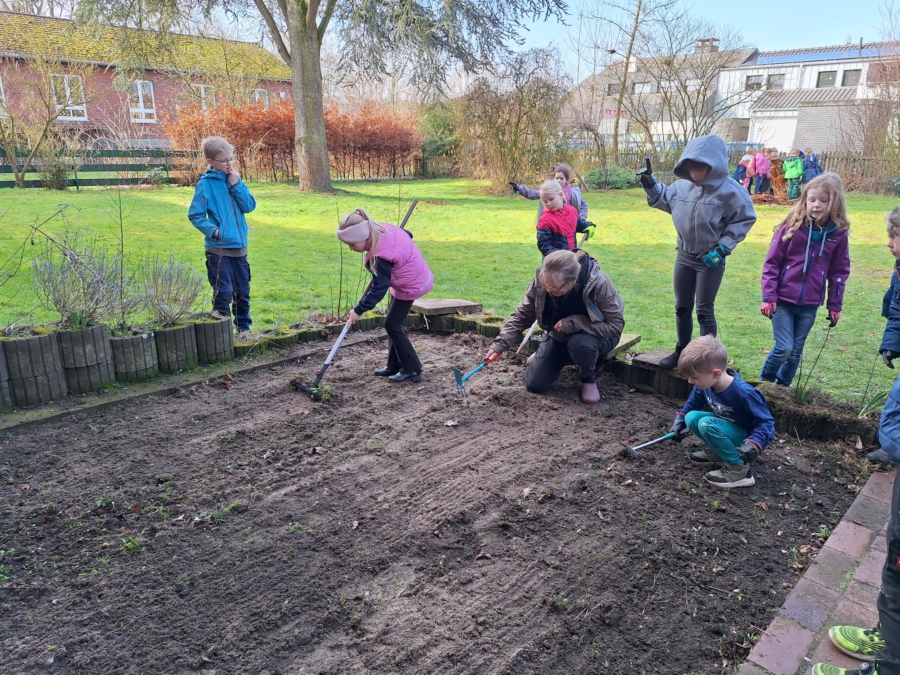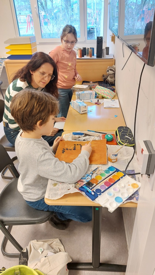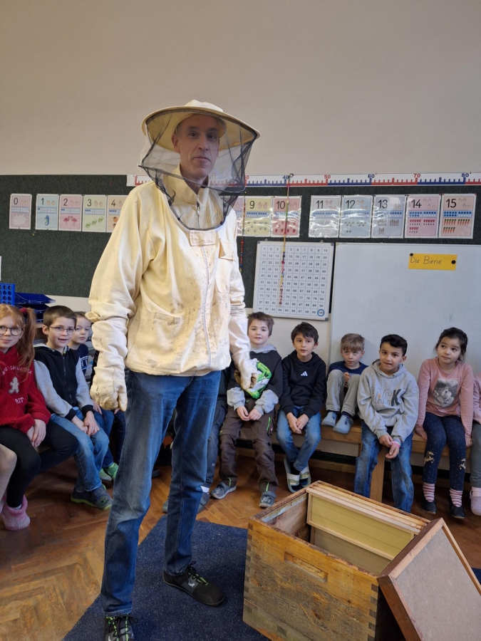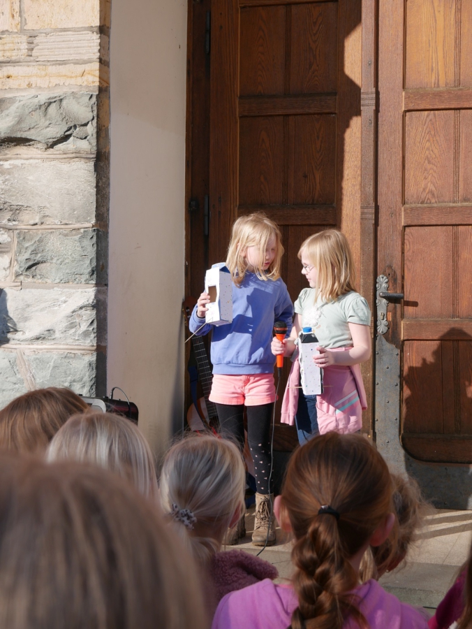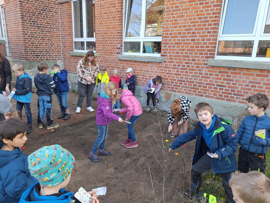 Eine Gruppe hatte aus Müll nützliche Gegenstände gebaut, z.B. kleine Vogelhäuschen, andere stellten plastikfreie Spiele und Mini-Gewächshäuser selbst her. Eine andere hatte zu jeweils einem Ziel einen Schuhkarton gestaltet, in dem z.B. saubere Energiearten nachgebaut wurden. Ein echter Imker kam zu Besuch und berichtete von der Pflege der wichtigsten Tierart für uns Menschen – die Biene! Entsprechend wurden Wildblumenbeete angelegt und Insektenhotels gebastelt. Als Alternative zu dem bekannten Sponsorenlauf wird eine Klasse für unicef eine ganze Woche lang lesen und mit dem Erlös hilfsbedürftige Kinder auf Madagascar unterstützen. Wie auch an einigen Stellen im Dorf wird es nun auch an der DWS ein „Tauschregal“ geben, um Dinge abzugeben und zu nehmen, die zum Wegwerfen zu schade sind. Um am besten ganz Hoetmar mit anzustecken, hatte eine Gruppe kleine Flyer hergestellt, die zum Umweltschutz aufriefen und sowohl an der Schule als auch im Dorf verteilt wurden.