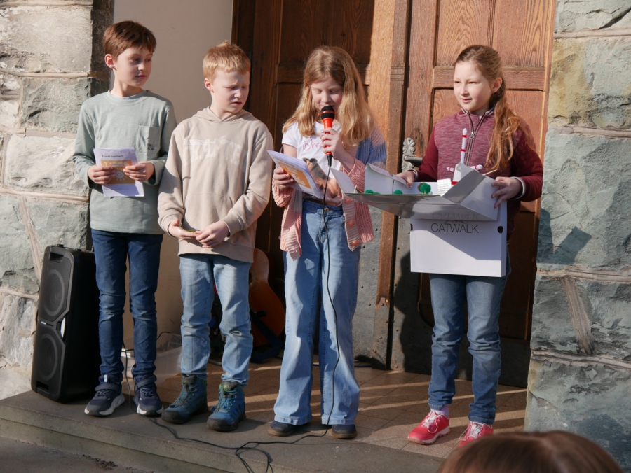 Anschließend durften alle Gruppen vor dem alten Portal ihre Ergebnisse präsentieren – es gab viel Applaus für die vielfältigen, tollen Beiträge und Ideen.