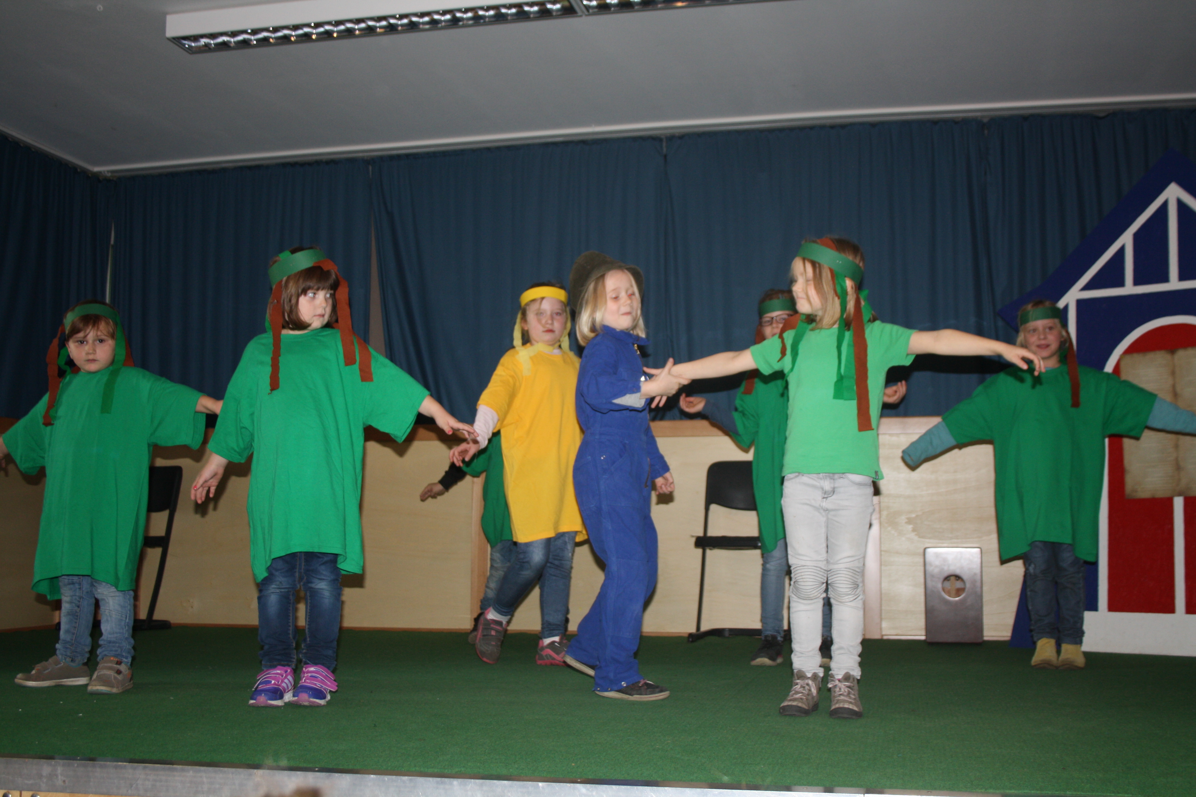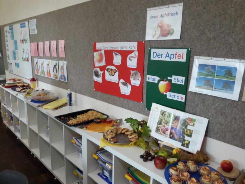 Weiterhin studierten die Kinder Gedichte, Lieder, Singspiele und ein Theaterstück mit viel Freude und Motivation für das Apfelfest ein. Schöne Bastelarbeiten schmückten die Klassenräume passend zum Thema.