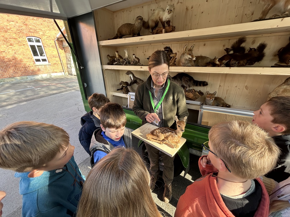 Schon seit vielen Jahren kommt die „Rollende Waldschule“ an die Dechant-Wessing-Schule, um den Kindern hautnahe Eindrücke und Informationen zum Pflanzen und Tieren des Waldes zu vermitteln. Mittlerweile ist ein ganzer Pool von etwa 20 Ehrenamtlichen entstanden, die im Auftrag der Kreisjägerschaft Informationsveranstaltungen durchführen.