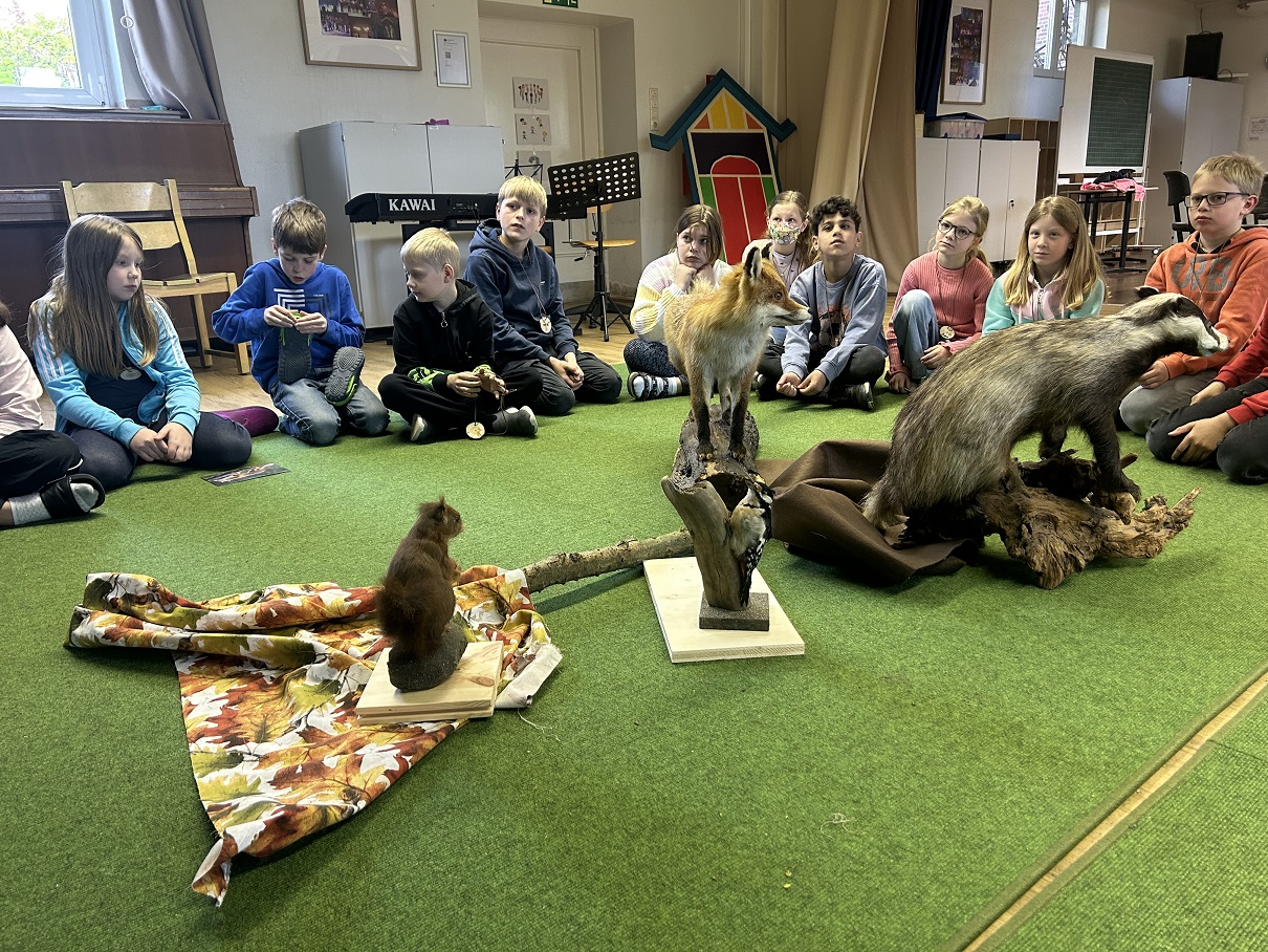 In diesem Jahr übernahm erstmals Alexandra und Georg Bütfering diese wichtige Aufgabe und besuchten alle drei Lernhäuser der Klassen 3/4 – und sie hatten neben zahlreichen spektakulären Tierpräparaten auch viele schöne Ideen dabei.
