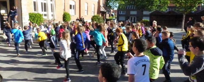 Am 15. Mai trafen sich alle Klassen zur sportlichen Großveranstaltung des Schuljahres auf dem Gelände der Dechant-Wessing-Schule. Bei etwas kühleren Temperaturen, jedoch herrlichem Sonnenschein machten sich die Kinder zunächst mit Frau Kipp warm und locker. [...]